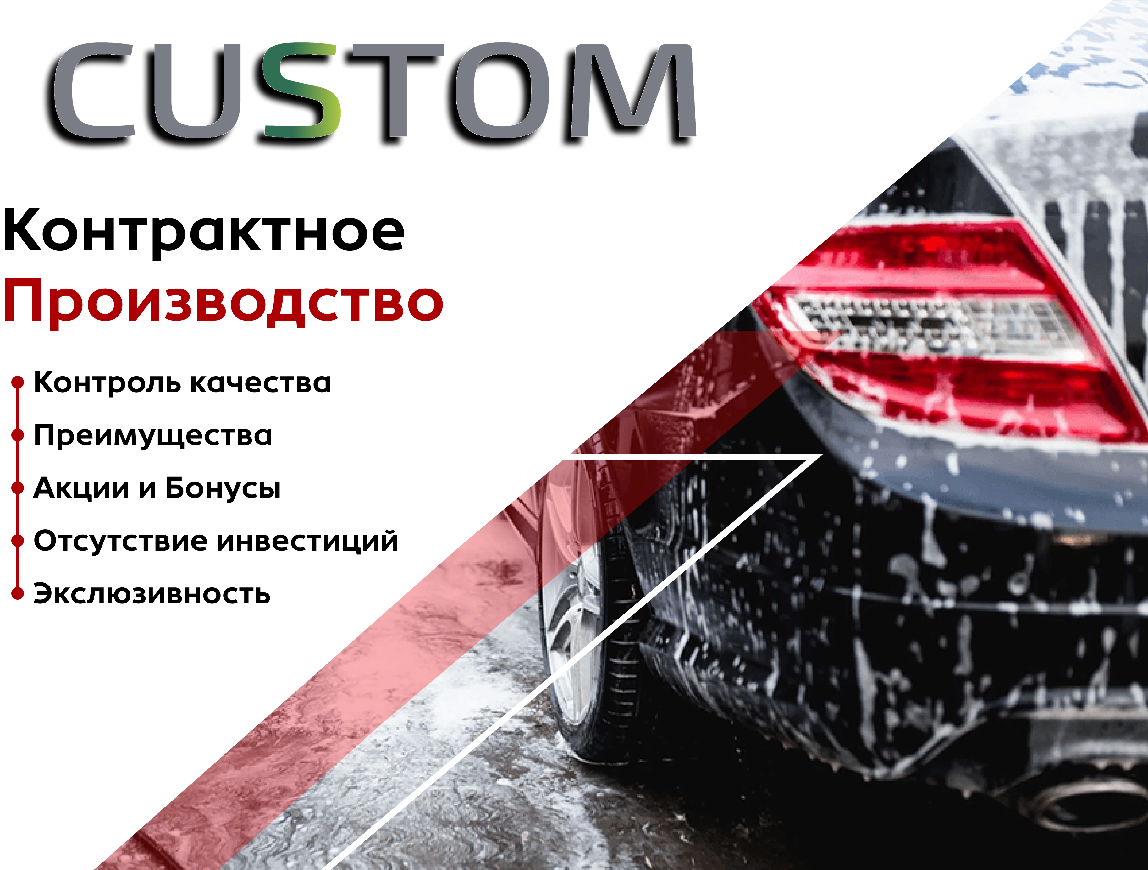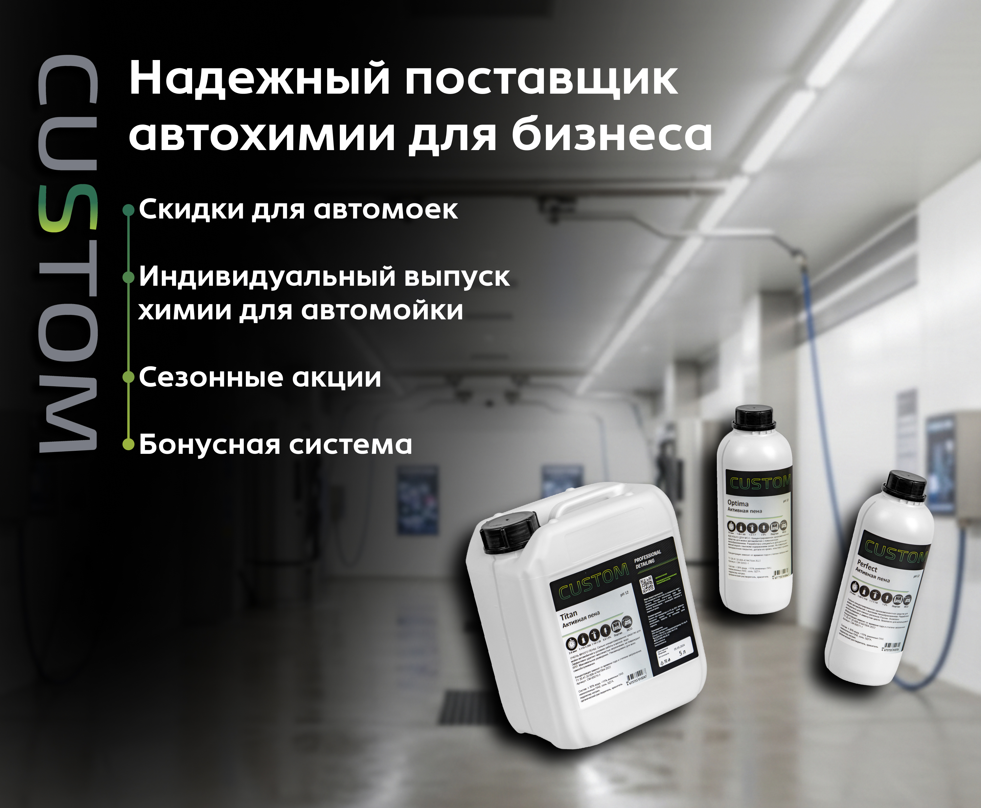 Интернет-магазин товаров для детейлинга Custom Store предлагает автохимию, автокосметику и оборудование для автомоек. Мы продаем товары, которые помогут профессиональным детейлерам, автомойщикам, владельцам автомобилей, спецтранспорта и мототехники поддерживать красивый вид транспортных средств, близкий к заводскому состоянию. Ухоженные машины приятно выделяются в дорожном потоке, привлекают внимание, их проще продать на вторичном рынке.
